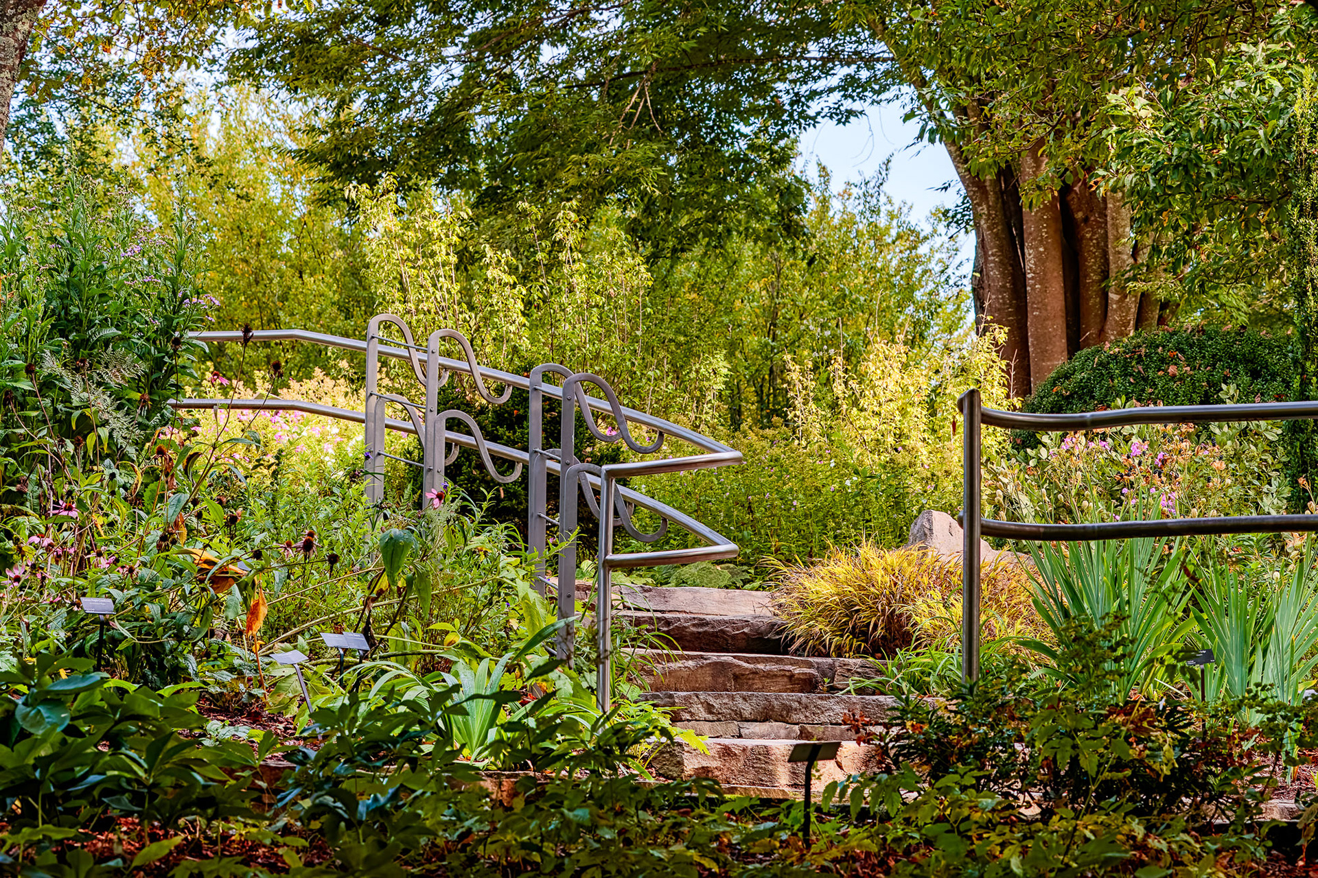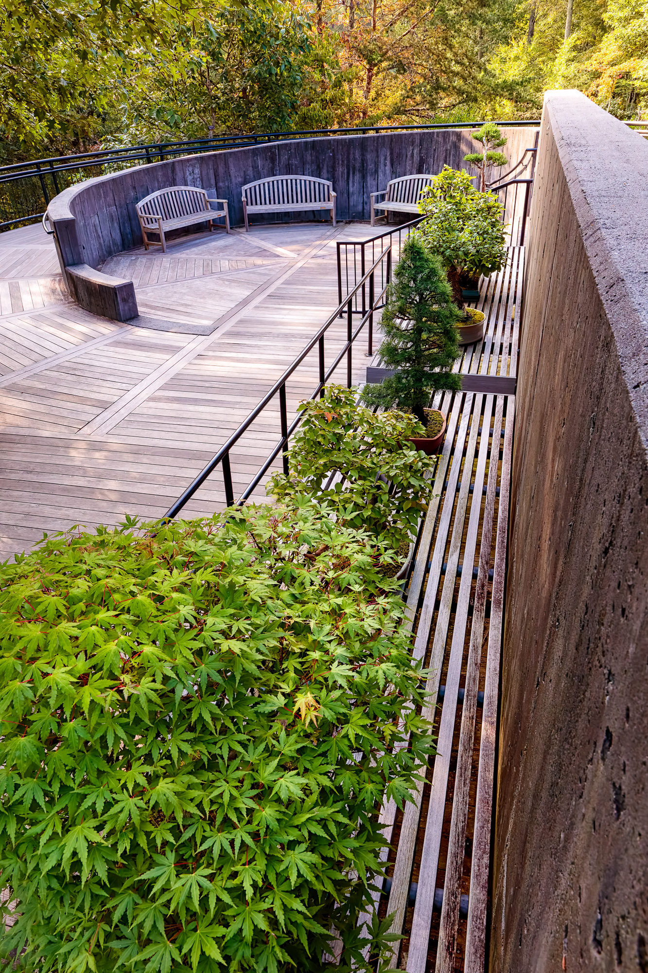 Some gardens are all about the plants – spotting novelties or investigating a collection. Others are all about the designer's vision – vistas, hard-landscaping, statement pieces. It's normally clear where to point the camera within about 5 minutes of looking around. At the North Carolina Arboretum, on the other hand, I was struck by the sheer diversity of shots – long-distance views of mountain landscapes, striking formal designs in the foreground, individual native plants crying out for some macro photography, with a side-order of bonsai for that art gallery touch. In other words, something for everyone – a display garden full of colour and surprising combinations surrounded by a natural forest of immense beauty. And all with an unmistakeable Appalachian accent.